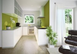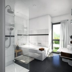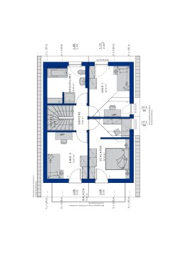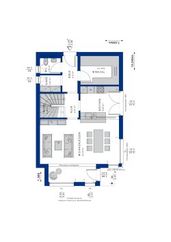 Der intelligente Grundriss bietet auf 129 Quadratmetern alles für das perfekte Wohnerlebnis. Im Erdgeschoss dient der großzügige Wohn-/Essbereich mit angeschlossener Küche als Lebensmittelpunkt für die Bewohner. Dank großzügiger Fensterflächen sind alle Räume hell und lichtdurchflutet und bieten gleichzeitig ausreichend Stellfläche. Durch die platzsparende integrierte Treppe, die sowohl im Erd- als auch im Obergeschoss Basis für eine intelligente Raumaufteilung ist, erschließen sich die drei Schlafzimmer und das große Wellness-Bad im Obergeschoss. Auch hier begeistern große und lichtdurchflutete Zimmer.