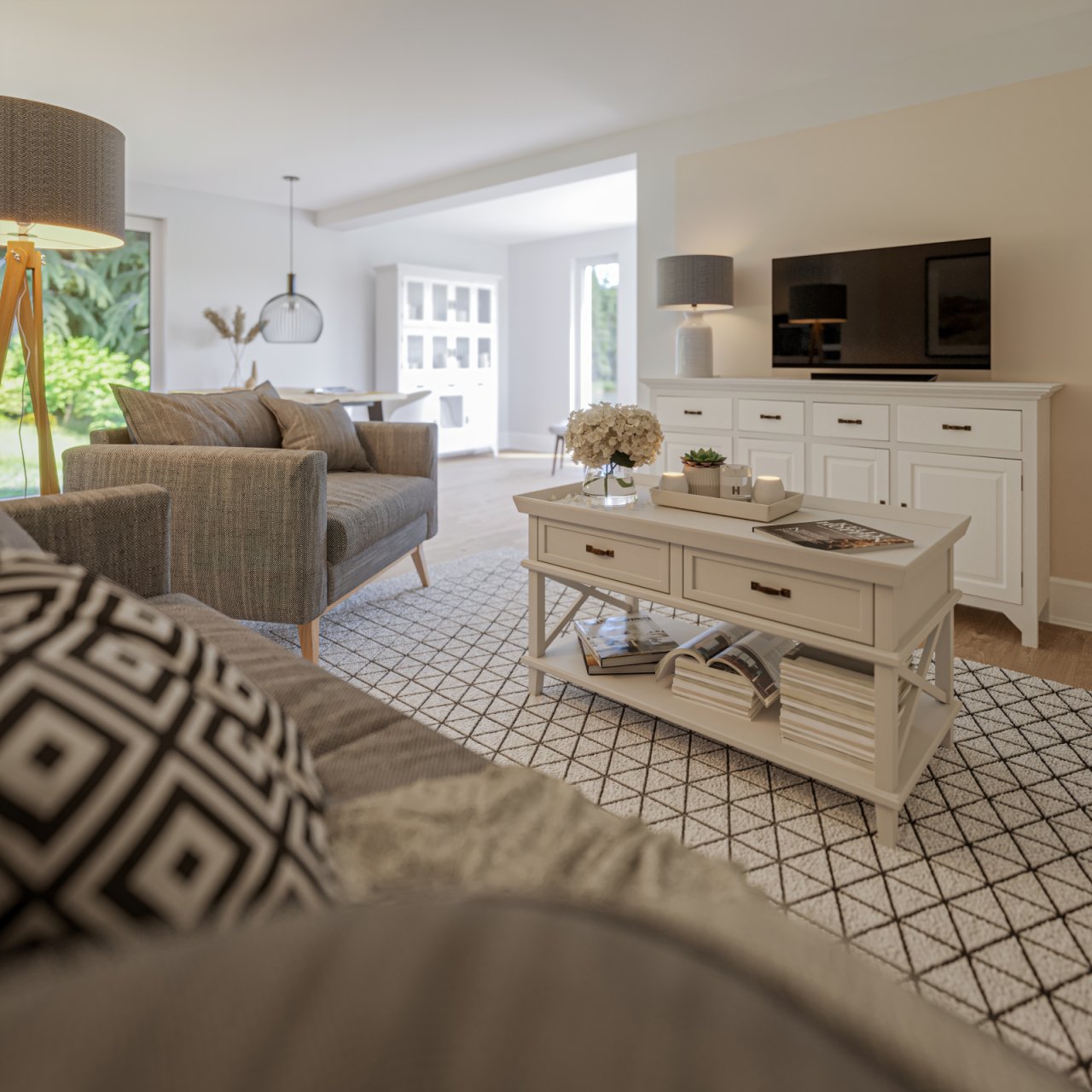Alle Varianten verfügen über einen offenen, lichtdurchfluteten Koch-Ess-Wohnbereich, die Schlafzimmer weisen eine separate Ankleide auf und die Badezimmer sind mit Dusche und Wanne bestens ausgestattet. Dazu kommt: Dank eigenem Technik- und Hauswirtschaftsraum funktioniert das komfortable Wohnkonzept auf einer Ebene auch ohne Untergeschoss ausgezeichnet.